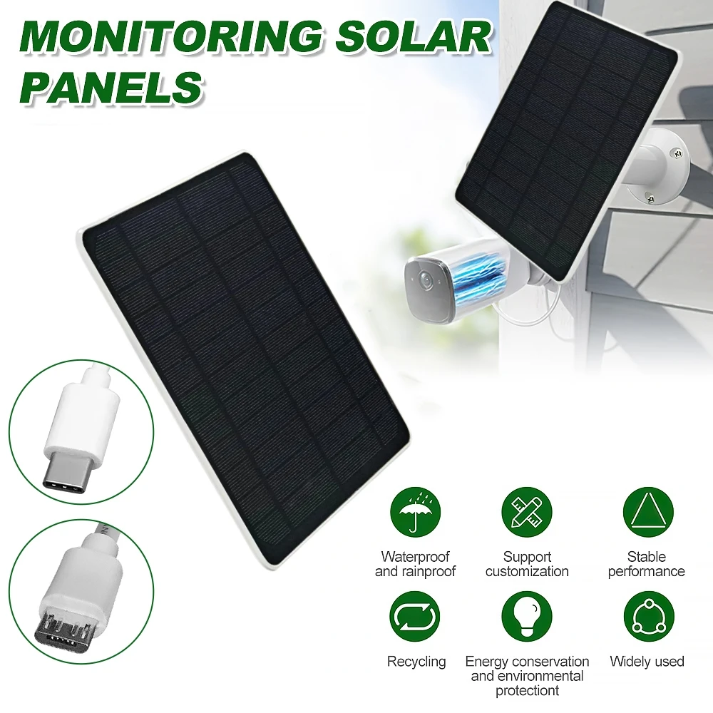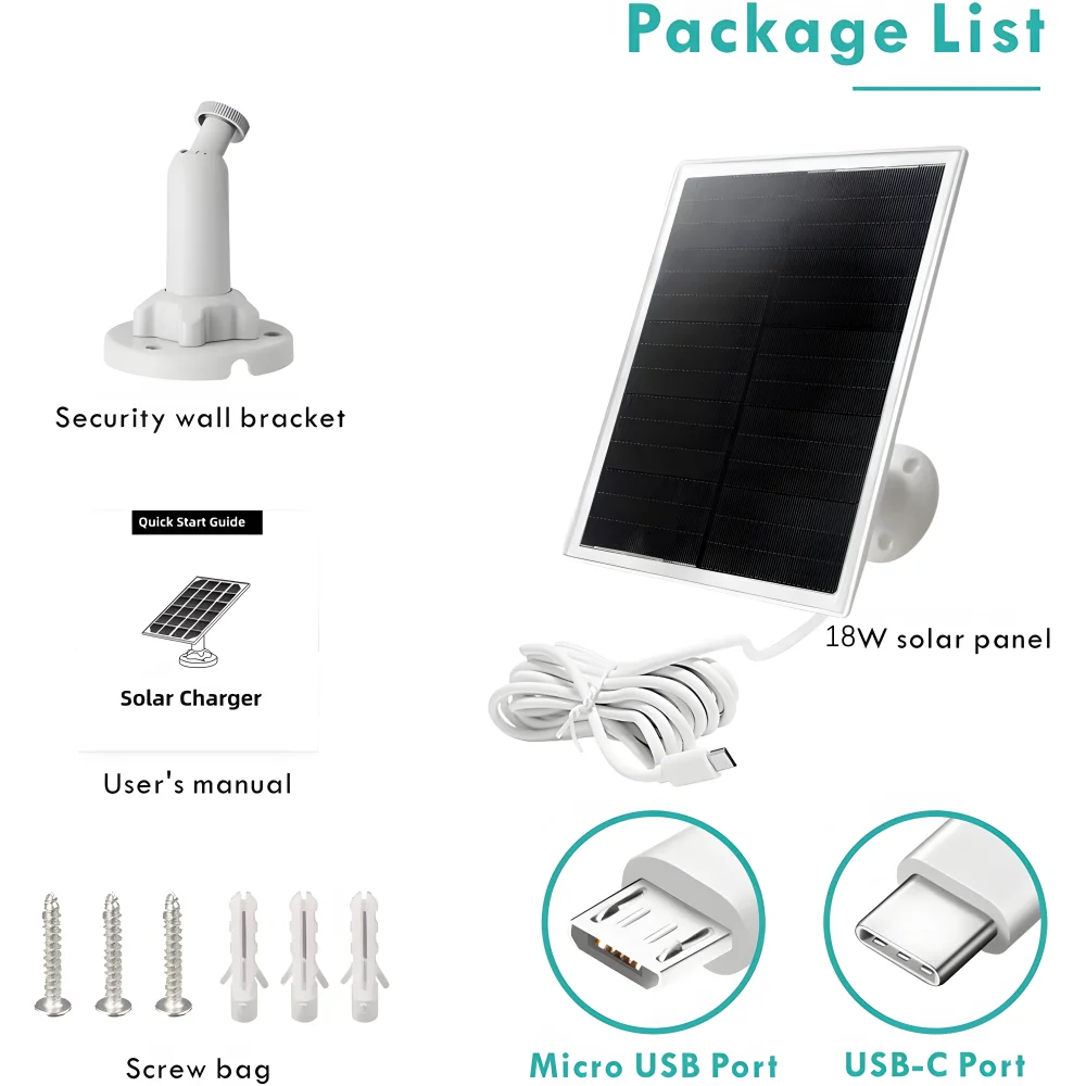 - Wide Compatibility: Equipped with Micro USB and Type-C charging interfaces, it’s compatible with various devices including rechargeable batteries, outdoor security cameras, smart doorbells, mobile phones, and garden lamps.